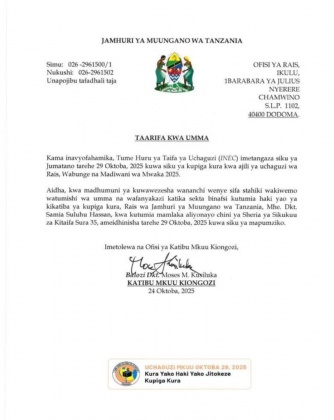Siku ya Tarehe 29 Oktoba,2025 ni siku ya mapumziko kwa ajili ya kupiga kura